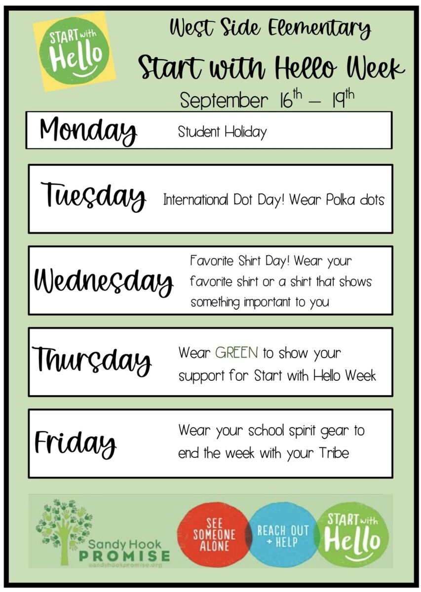 Reminder! We’re kicking off “Start with Hello Week” tomorrow. 💚